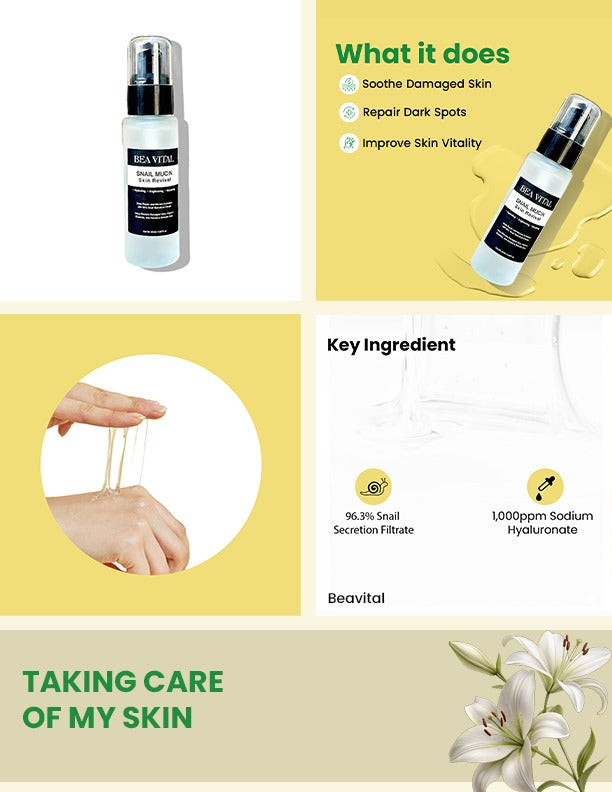 Give your skin the love it deserves with Beavital Snail Mucin Hydrating Serum — a lightweight, fast-absorbing formula that repairs, hydrates, and brightens your skin from within.